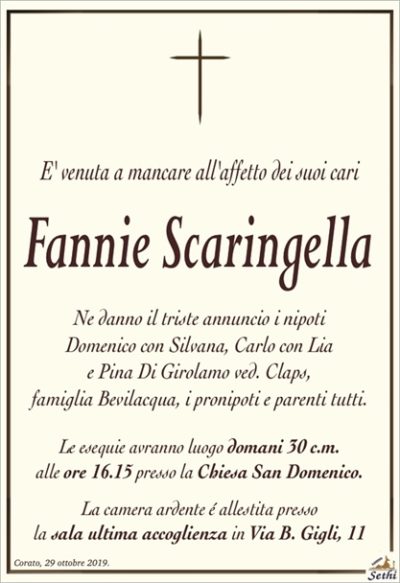 Il rito funebre è stato celebrato il giorno 30 novembre 2019