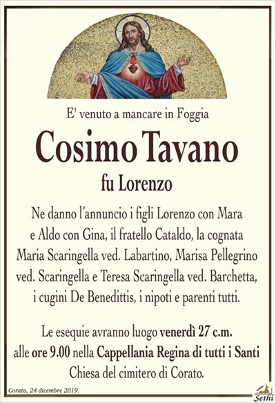 Il rito funebre è stato celebrato il giorno 25 dicembre 2019