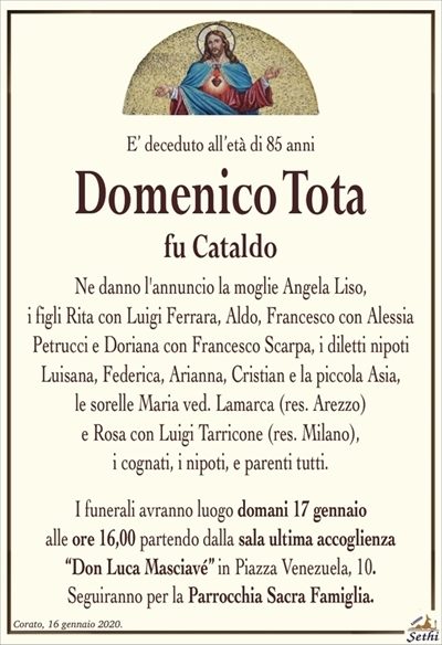 Il rito funebre è stato celebrato il giorno 17 gennaio 2020
