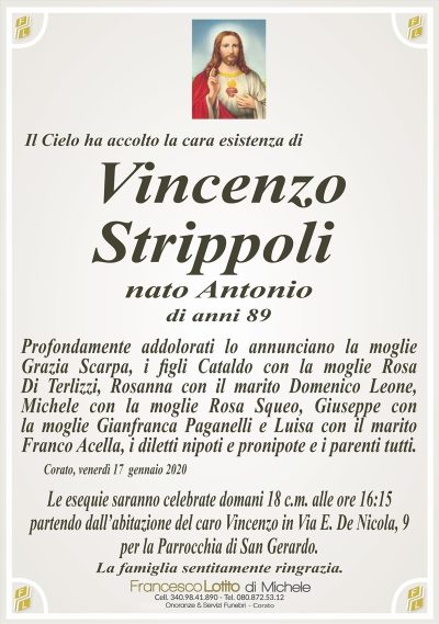 Il rito funebre è stato celebrato il giorno 18 gennaio 2020
