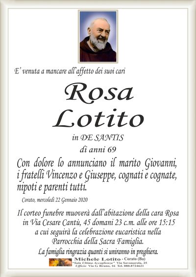 Il rito funebre è stato celebrato il giorno 23 gennaio 2020