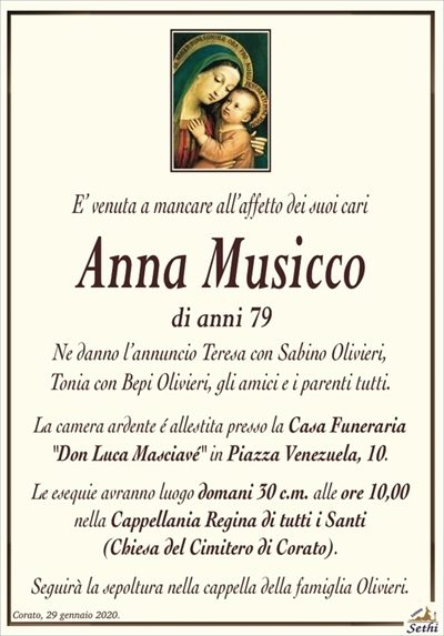 Il rito funebre è stato celebrato il giorno 30 gennaio 2020