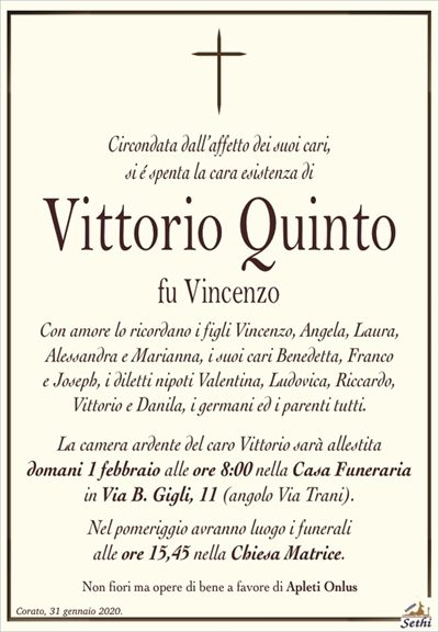 per esprimere il proprio dolore, forse è meglio non dire niente solo grazie Sig. Quinto dal tuo Collaboratore di oltre 40 anni