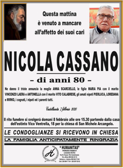 Il rito funebre è stato celebrato il giorno 8 febbraio 2020