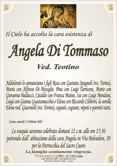 Il rito funebre è stato celebrato il giorno 12 febbraio 2020