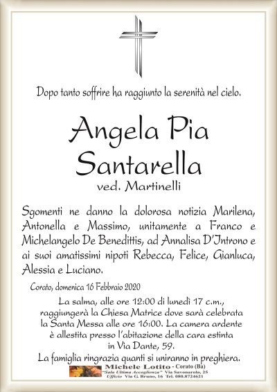 Il rito funebre è stato celebrato il giorno 17 febbraio 2020
