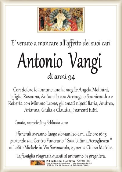 Pubblicazione in evidenza di un manifesto sul portale, posizionato tra i primi 10 annunci subito sotto quello del defunto, garantendo massima visibilità. Incluso anche un manifesto digitale presso la sala d’accoglienza e un manifesto cartaceo presso la chiesa. La posizione online segue l’ordine cronologico di pubblicazione.