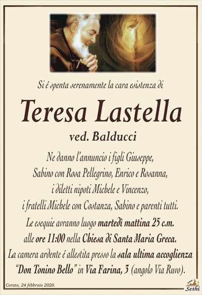 Il rito funebre è stato celebrato il giorno 25 febbraio 2020