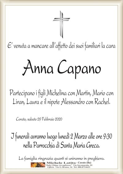 Il rito funebre è stato celebrato il giorno 1 marzo 2020