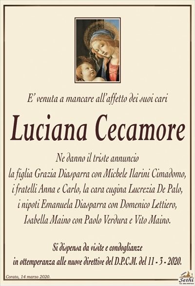 Il rito funebre è stato celebrato il giorno 15 marzo 2020