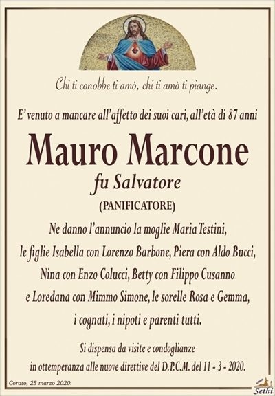 Il rito funebre è stato celebrato il giorno 26 marzo 2020