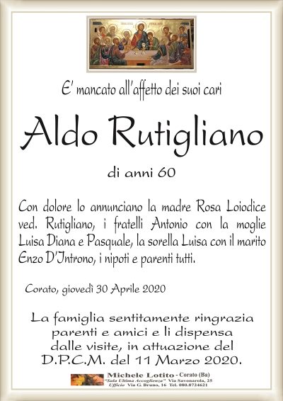 Il rito funebre è stato celebrato il giorno 1 maggio 2020