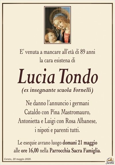 Il rito funebre è stato celebrato il giorno 21 maggio 2020
