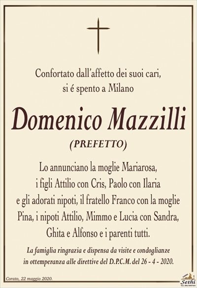 Il rito funebre è stato celebrato il giorno 23 maggio 2020