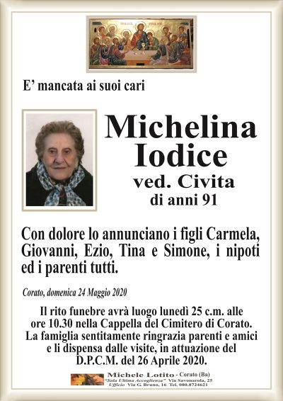 Il rito funebre è stato celebrato il giorno 25 maggio 2020