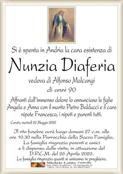 NUNZIA DIAFERIA vedova di Alfonso Malcangi