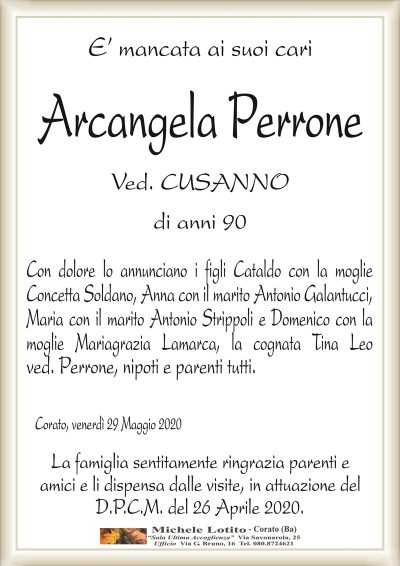 Il rito funebre è stato celebrato il giorno 30 maggio 2020