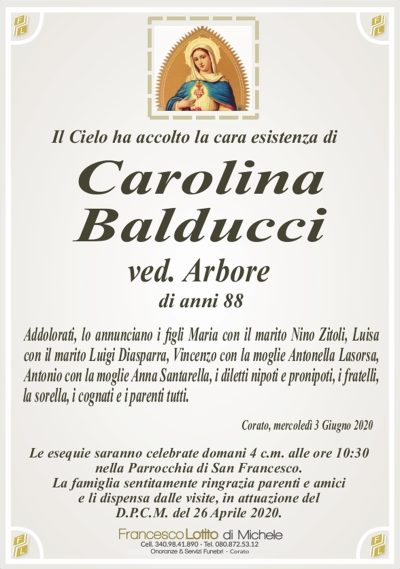 si associano al dolore della famiglia BALDUCCI – ARBORE