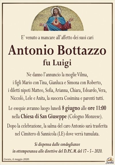 Il rito funebre è stato celebrato il giorno 7 giugno 2020