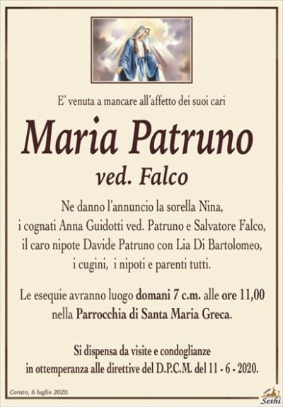 Il rito funebre è stato celebrato il giorno 7 luglio 2020