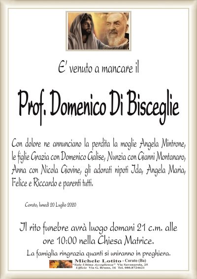 Che il Signore ti accolga e ti custodisca nel Suo infinito Amore e nel Suo abbraccio misericordioso.