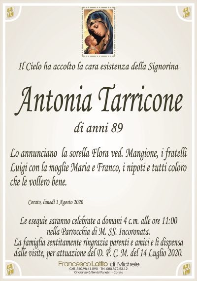 Il rito funebre è stato celebrato il giorno 4 agosto 2020