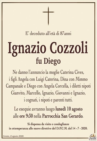 Il rito funebre è stato celebrato il giorno 9 agosto 2020