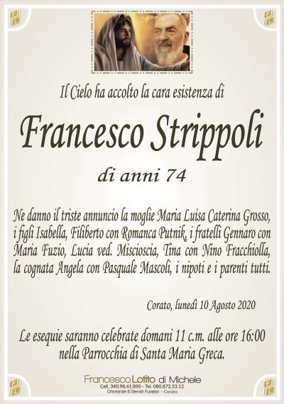 Il rito funebre è stato celebrato il giorno 11 agosto 2020