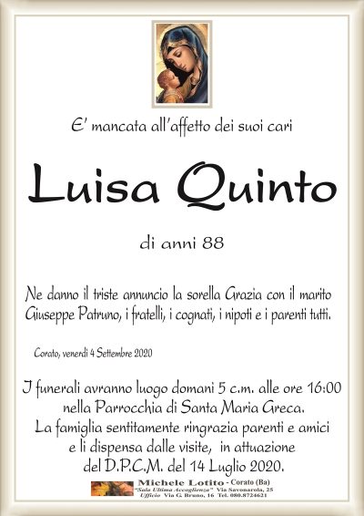 Il rito funebre è stato celebrato il giorno 5 settembre 2020