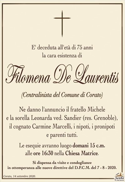 Il rito funebre è stato celebrato il giorno 15 settembre 2020