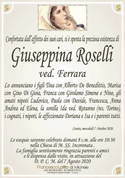 Il rito funebre è stato celebrato il giorno 8 ottobre 2020