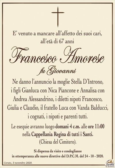 per l’improvvisa e repentina dipartita dell’amato genitore