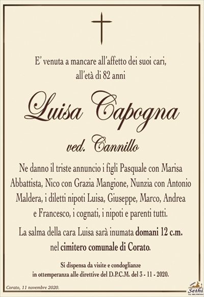 Il rito funebre è stato celebrato il giorno 12 novembre 2020