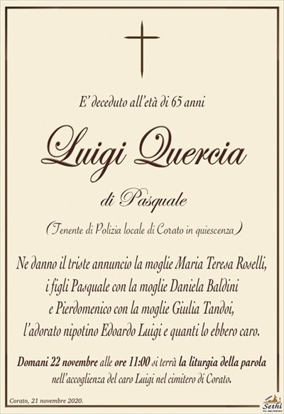 Il rito funebre è stato celebrato il giorno 22 novembre 2020