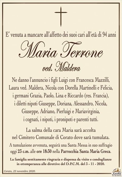 Il rito funebre è stato celebrato il giorno 23 novembre 2020