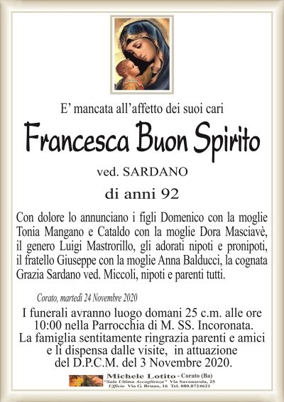 FRANCESCA BUON SPIRITO ved. Sardano