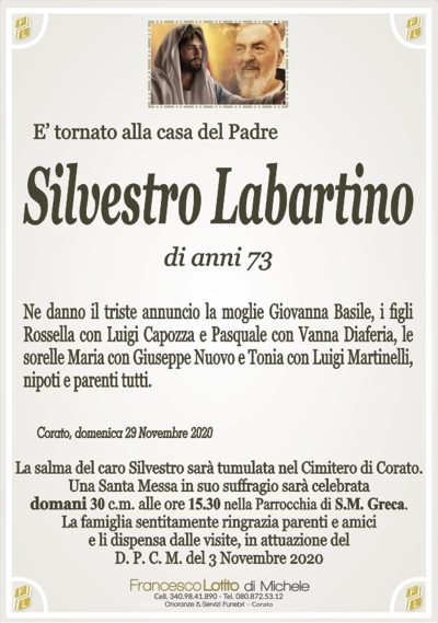 Pubblicazione in evidenza di un manifesto sul portale, posizionato tra i primi 10 annunci subito sotto quello del defunto, garantendo massima visibilità. Incluso anche un manifesto digitale presso la sala d’accoglienza e un manifesto cartaceo presso la chiesa. La posizione online segue l’ordine cronologico di pubblicazione.