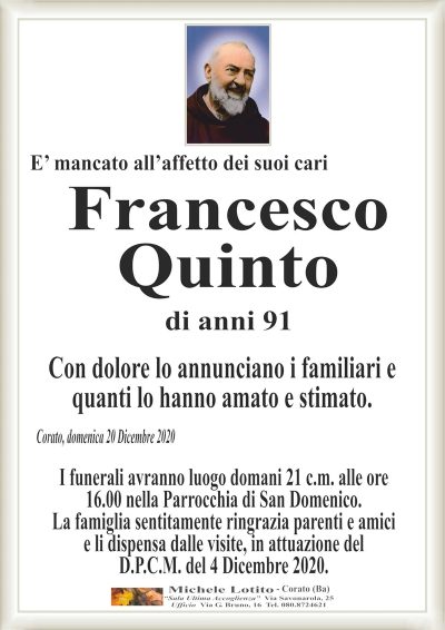 Il rito funebre è stato celebrato il giorno 21 dicembre 2020