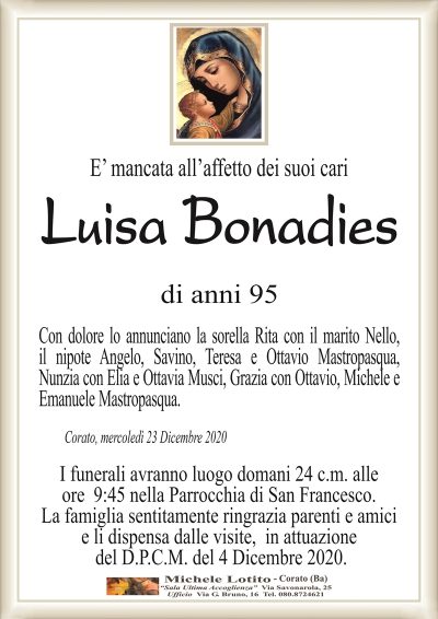 Il rito funebre è stato celebrato il giorno 24 dicembre 2020